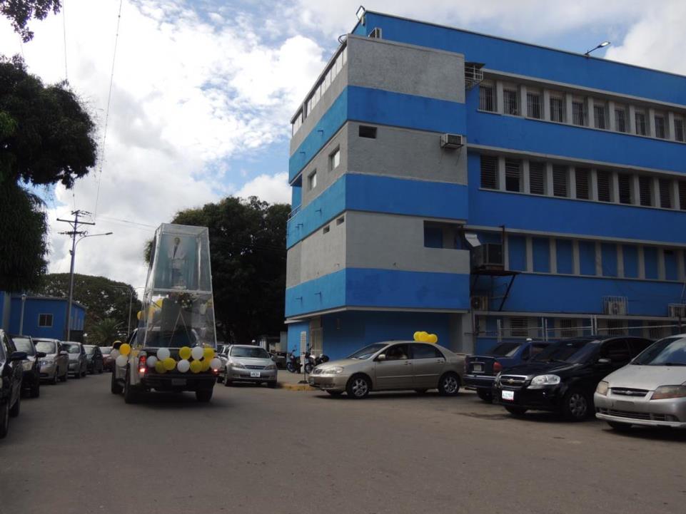 Las imágenes continuaron su rumbo por la avenida Aranzazu, Enrique Tejera, Feria, hasta llegar a la Maternidad del Sur, allí se celebró la Santa Misa para pedir por los recién nacidos y por los niños por nacer; la celebración litúrgica fue presidida por el Pbro. Wilmer Moyetones y concelebrada por el Padre Tomás Martínez.