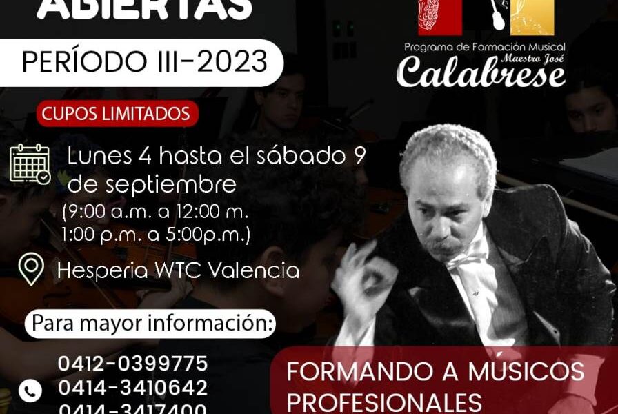Desde este lunes 4 de septiembre y hasta el sábado 9, permanecerán abiertas las inscripciones para el Programa de Formación Musical “Maestro José Calabrese” de la...